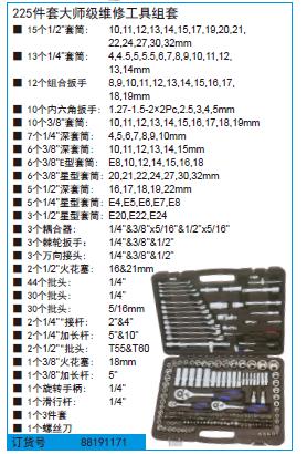 ·13个1/4"套筒:4,4.5,5,5.5,6,7,8,9,10,11,12,