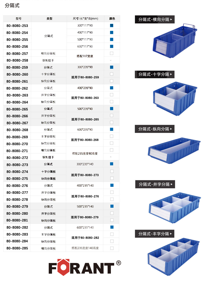 ·全新料制作,绿色环保 ·结构合理,承重能力强,满足各行业使用要求。 ·配合料架及货柜使用,可当作抽屉 ·可插入分隔板,将盒子分隔为多个独立单元,实现多SKU存储