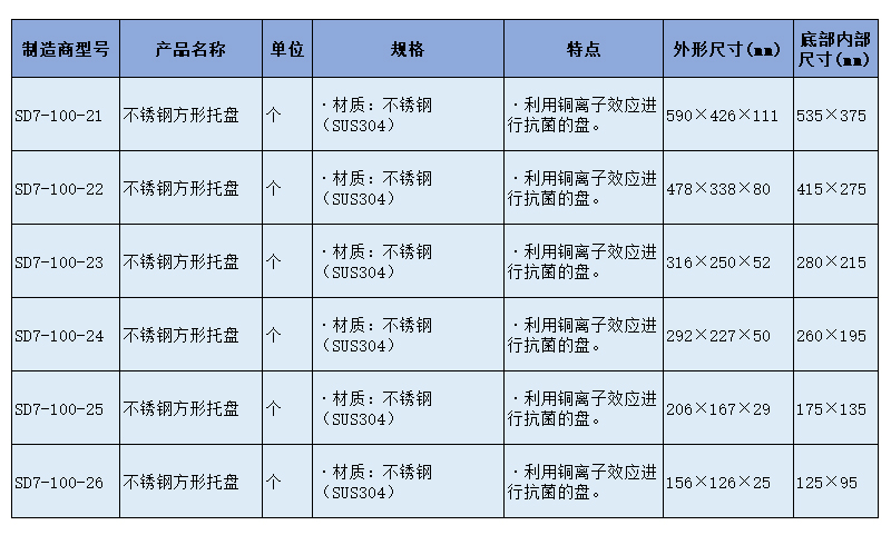 SLAMED 不锈钢方形托盘 478×338×80mm SD7-100-22