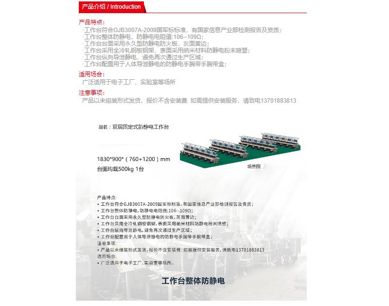 ·工作台整体防静电,防静电电阻值:106--109Ω;