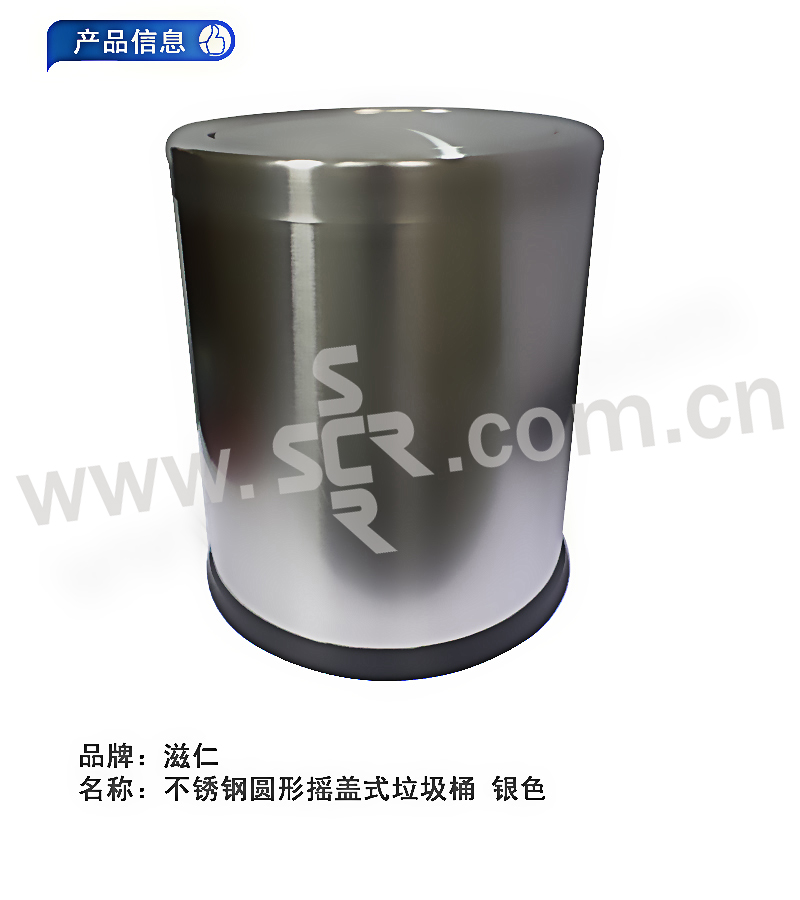 ZIREN/滋仁 不锈钢圆形摇盖式垃圾桶 LT-060 φ255×295mm 6L 不锈钢本色 1个