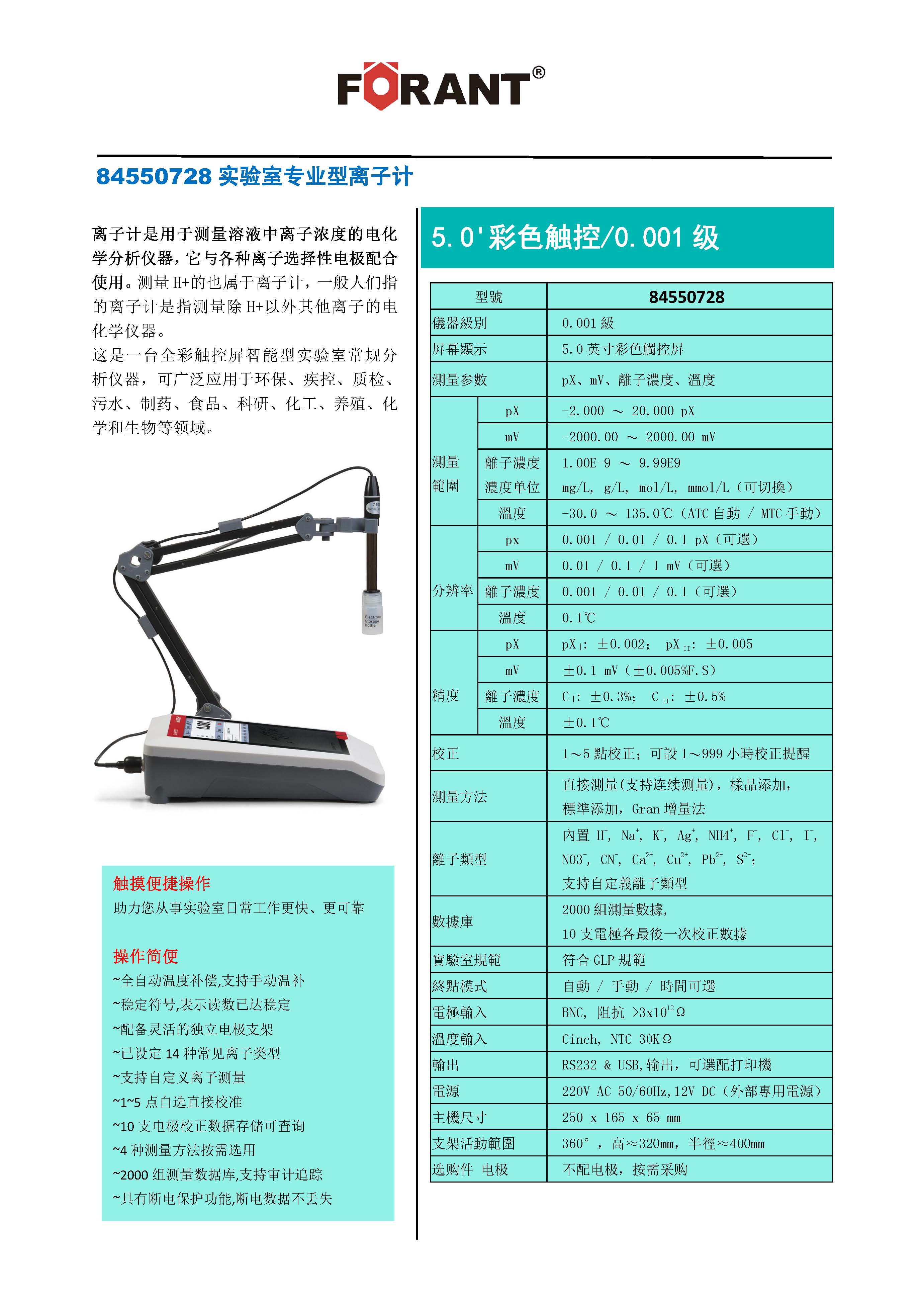 ·离子计是用于测量离子浓度的电化学分析仪器。它于各种离子选择性电极配合使用。根据能斯特方程在不同条件下的应用,可以用直接测量、样品增量法、已知增量法个Gran方法来测量溶液中的离子浓度。