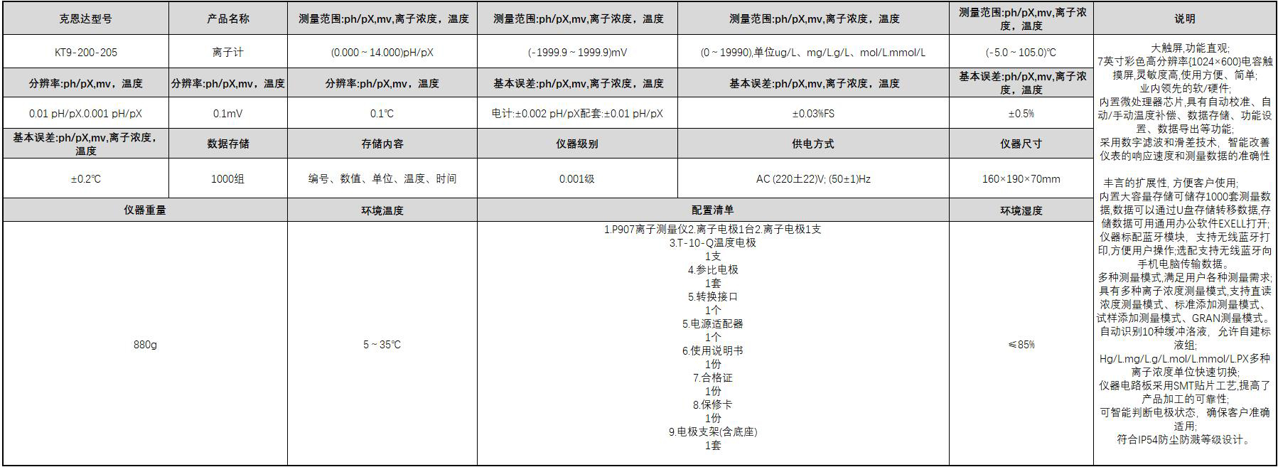 ·超大触屏,功能直观;7英寸彩色高分辨率{1024×600}电容触摸屏,灵敏度高,使用方便、简单;业内领先的软/硬件; ·内置微处理器芯片,具有自动校准、自动/手动温度补偿、数据存储、功能设置、数据导出等功能; ·采用数字滤波和滑差技术,智能改善仪表的响应速度和测量数据的准确性。 ·丰言的扩展性,极大的方便客户使用;内置大容量存储可储存1000套测量数据,数据可以通过U盘存储转移数据,存储数据可用通用办公软件EXELL打开; ·仪器标配蓝牙模块,支持无线蓝牙打印,方便用户操作;选配支持无线蓝牙向手机电脑传