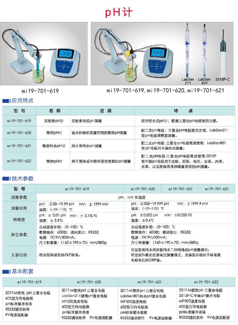 PH:±0.01PH, mv:±0.1%FS,温度:±0.5℃