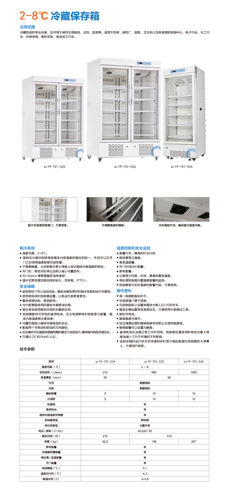 K02647 mi19-701-525 2~8℃ 1100×454×1325mm 656L 喷塑钢板 喷塑钢板 数码管 无氟环保 AC220 / 50 0.1 ≤ 2 ≤ 0.8 24990.00