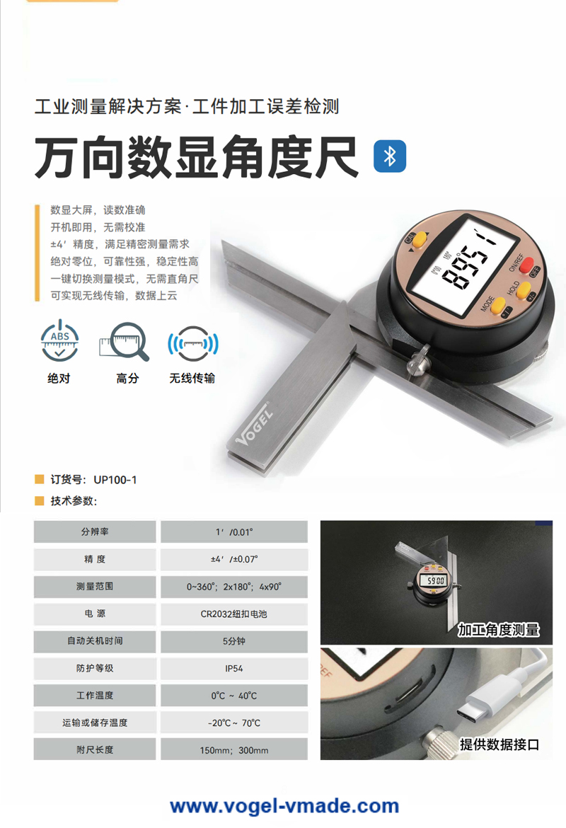 B81759 UP100-1 1'/0.01° 士4'/士0.07º 0~360° ; 2x180° ; 4x90° CR2032纽扣电池 5分钟 IP54 0 ° C ~ 40° C -20° C ~ 70° C 150mm; 300mm 8983.20