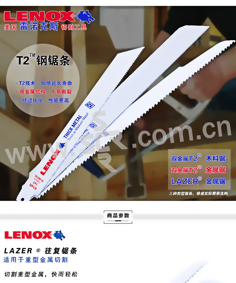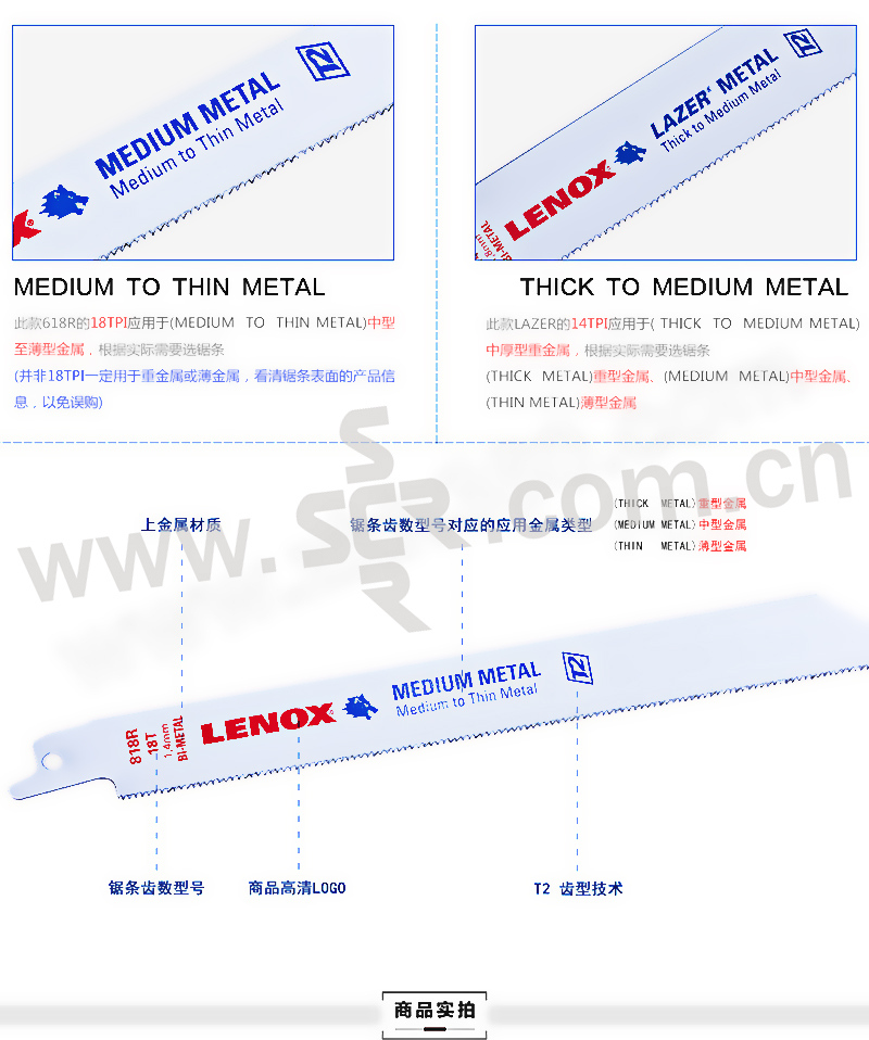 LENOX/雷诺克斯 进口双金属往复锯片 818R金属切割 8" 200×19mm 1条