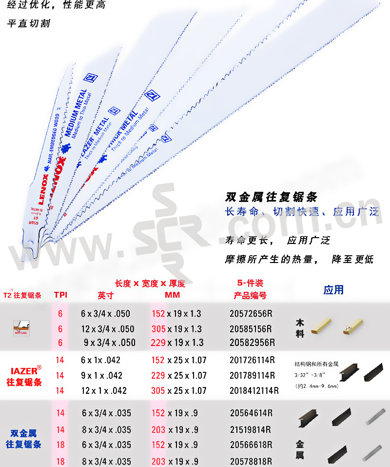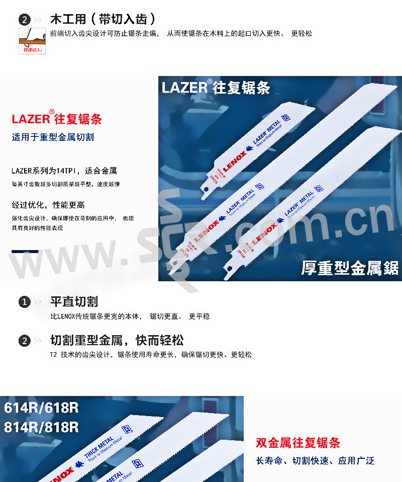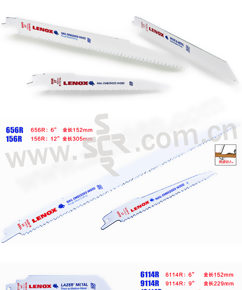 LENOX/雷诺克斯 进口双金属LAZER往复锯片 12114R厚金属切割 12" 300×25mm 1条
