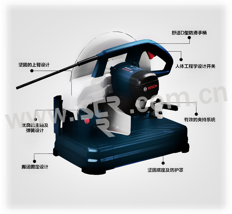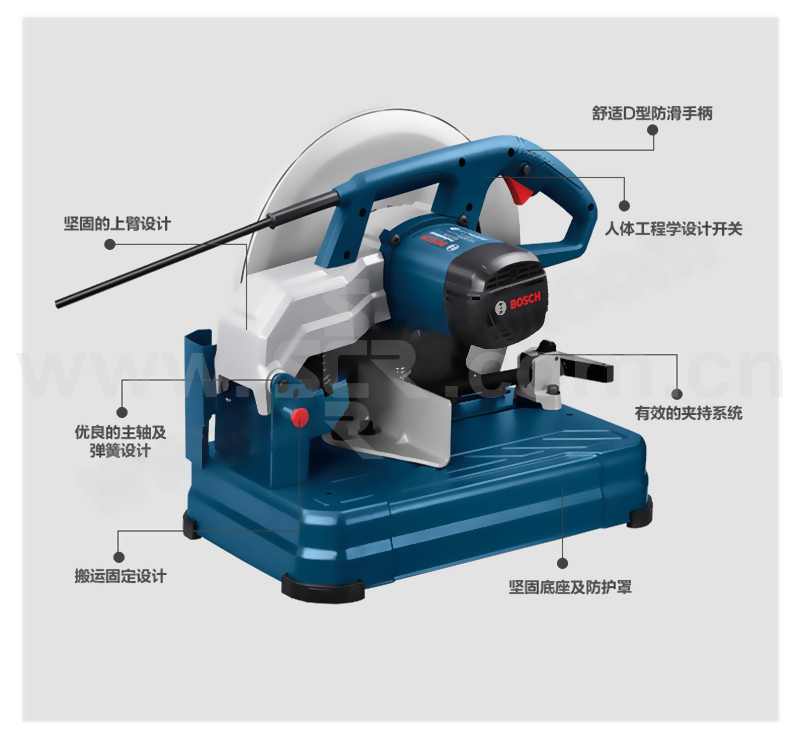 ·强度的铝制摇臂和枢轴系统能满足重负荷钢材切割作业的要求。·人机工程学设计的D形手柄带有凹窝,适合长时间使用。·拥有防尘和防火花马达系统,使用寿命长。·坚固的防护系统有助于在切割过程中显著程度抑制摆动。·可调式火花防护罩能够在工具对不同形状的材料进行切割时显著程度避免火花偏转。
