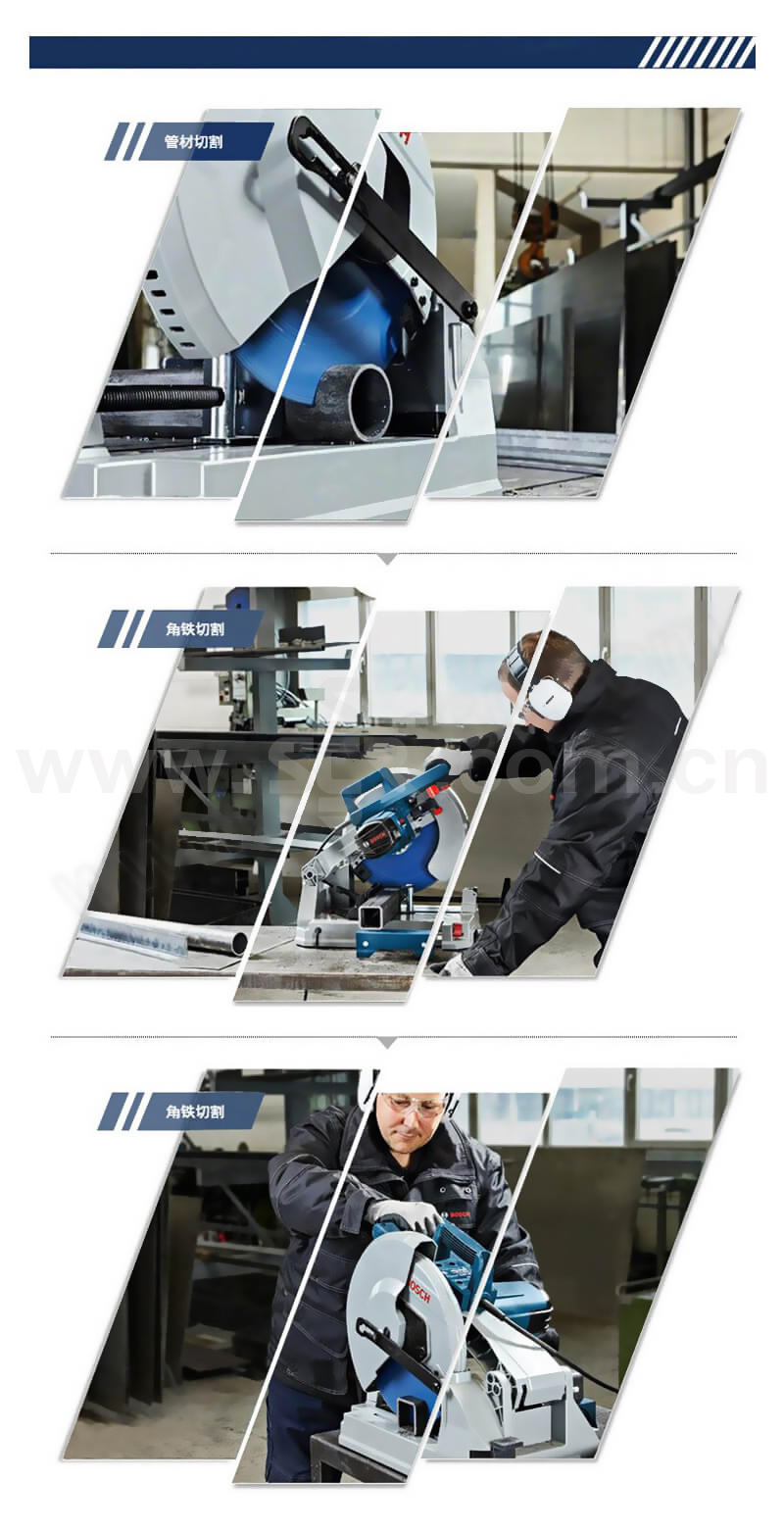 ·2000 瓦高扭矩马达能够实现快速的作业进程。 ·机器配备带启动电流限制的软启动功能。 ·集成式侧面加长件可为长工件提供理想支撑。 ·无需工具便可调节角度,以确保轻松操控和斜榫切割。 ·坚固的强化铸铝支承工作台。 ·易读的度数刻度使从 90 度至 45 度的调节变得更简单。 ·配备“Expert for Steel”钢材切割专业型锯条,可实现长使用寿命和清洁切割。
