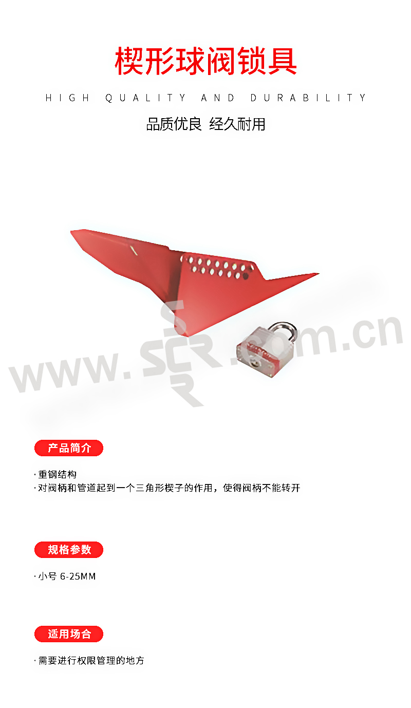 ·对阀柄和管道起到一个三角形楔子的作用,使得阀柄不能转开