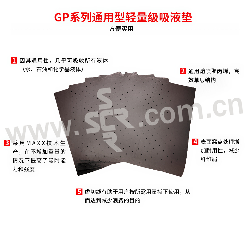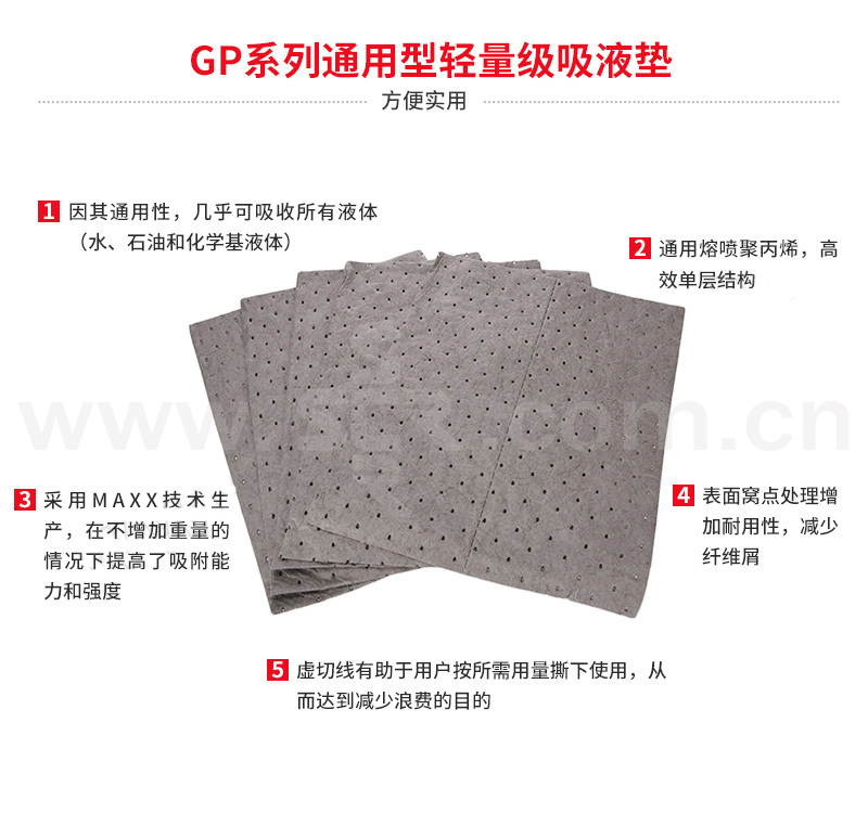 ·因其通用性,几乎可吸收所有液体(水、石油和化学基液体)