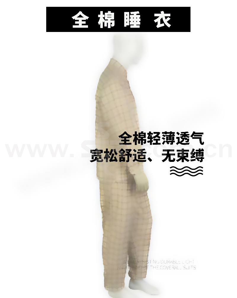 JSMYW/九思牧羊王 纯棉衬衣裤 黄白格子 165/M 黄白格子 1套