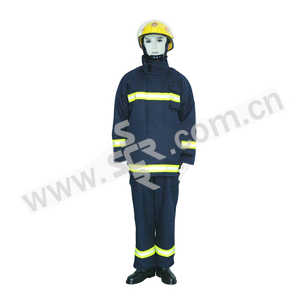·采用内外层脱卸式结构,四层材料组合。由国产普通阻燃层、防水透湿层、隔热层、舒适层组成,并在上、下衣的明显处有反光标志·整套服装包括上衣、背带裤。该服装只是对穿着身体的防护,进入作业现场应同时穿着其他个人保护装备来保护穿着身体的其他部位,如脚、手和头部·阻燃、隔热、防水、透气、灵活、适用性强等,在抢险作业时能有效的防止热量的传导·阻燃性能:毁损长度≤10cm·续燃时间≤2S,无熔滴现象·断裂强力:经向≥650N,纬向≥650N·撕破强力:经、纬向