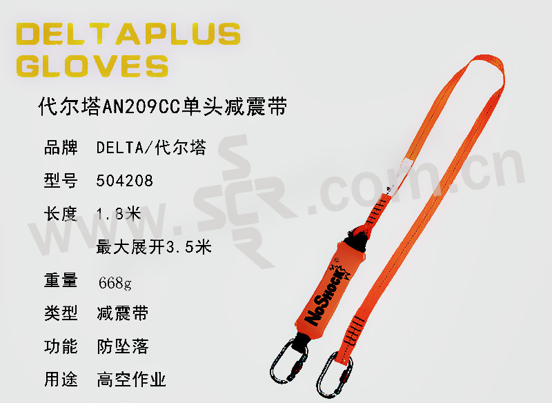 DELTA/代尔塔 NOSHOCK系列单小钩减震绳 504208 1.8m 1件