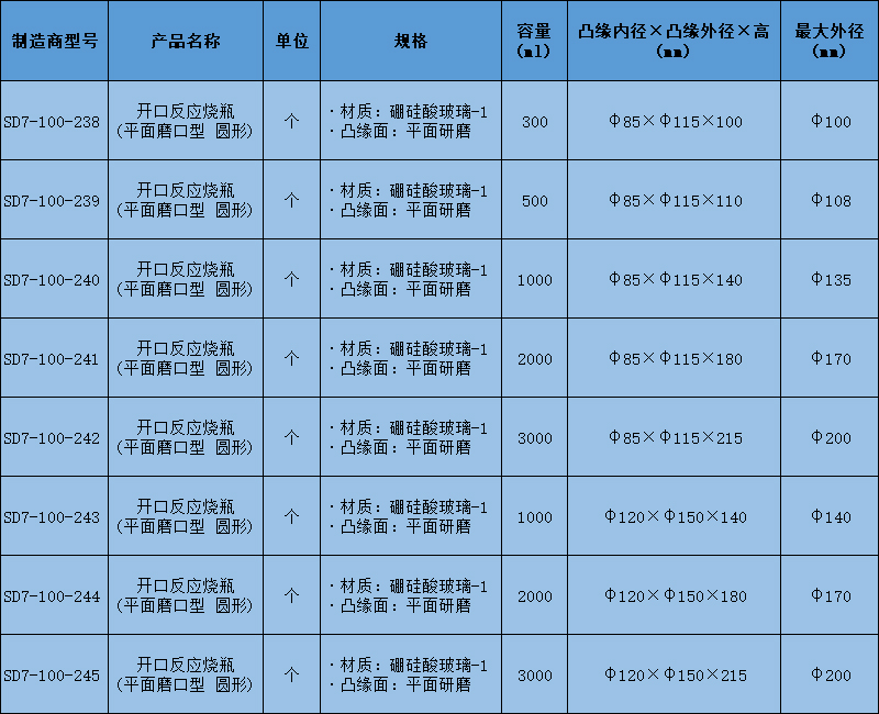 SLAMED 开口反应烧瓶(平面磨口型 圆形) 1000ml 外径:135 SD7-100-240