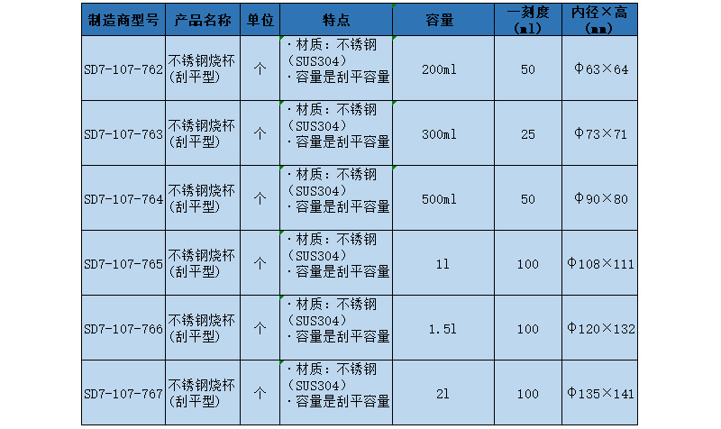 SLAMED 不锈钢烧杯(刮平型) 500ml SD7-107-764