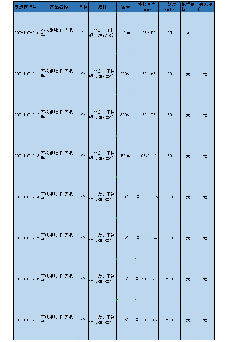 SLAMED 不锈钢烧杯 无把手 5L SD7-107-217