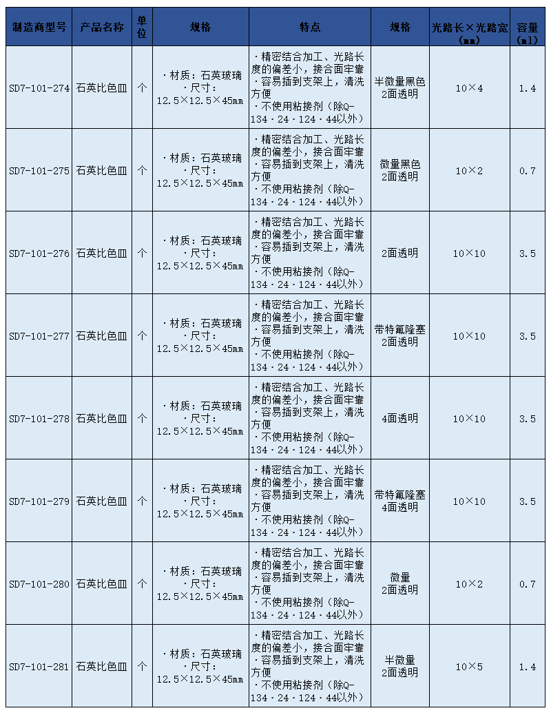 SLAMED 石英比色皿 两面透明 SD7-101-276