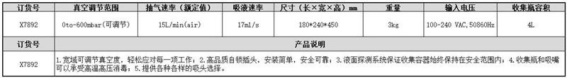 ·1.宽域可调节真空度,轻松应对每一项工作; ·2.高品质自锁插头,安装简单,安全可靠; ·3.液面探测系统保证收集容器始终保持在安全范围内; ·4.收集瓶和吸嘴可以承受高温高压消毒; ·5.提供各种各样的吸头选择。