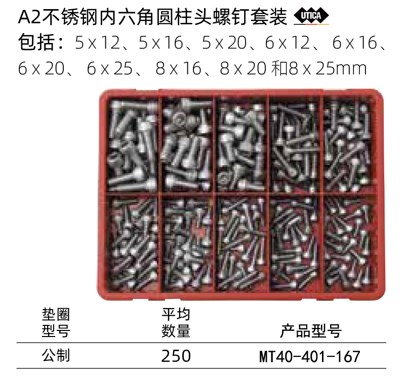 不锈钢内六角圆柱头螺钉套装 公制