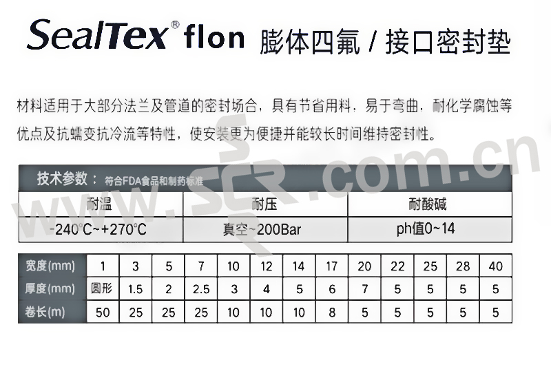 SEALTEX/索拓 耐酸碱腐蚀膨体四氟接口密封带 ST-3020 抗蠕变 10m 1盒