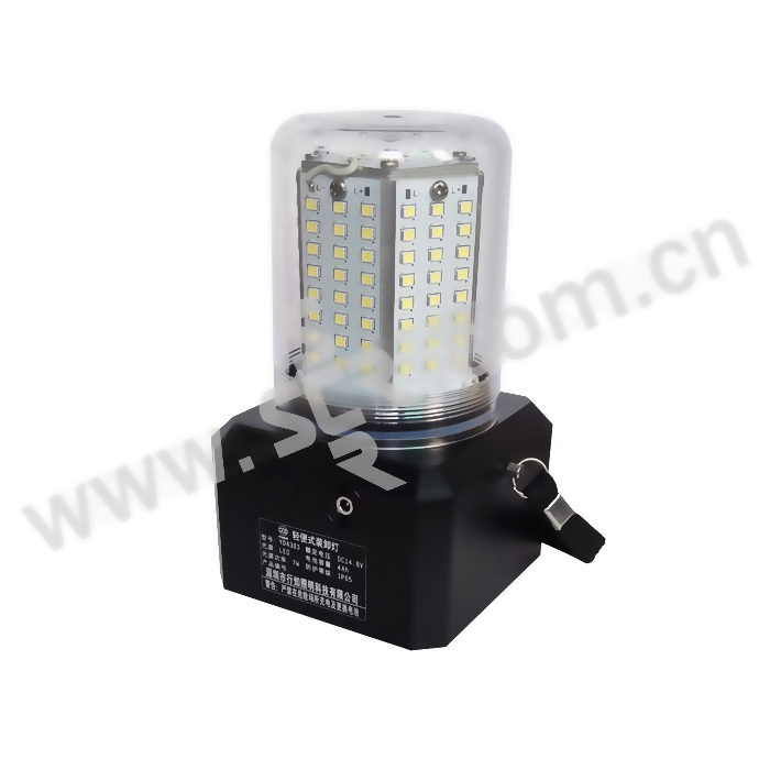 ·进口LED,光效高,平均使用寿命长。·轻质铝合金材料,坚固耐用,透明件采用进口高强度防弹材料,透光率高。·配光均匀,照射面积大,灯具360°周向发光,照射面积大,LED灯珠数目多,分布均匀,照射的光线均匀,无照射死角。·防护等级高达IP65,灯具可在恶劣环境中长期可靠工作。·外形美观,体积小,重量轻,使用方便,可采用台面放置、系绳悬挂式,底座设计有强力磁铁,可使用磁力吸附照明方式。