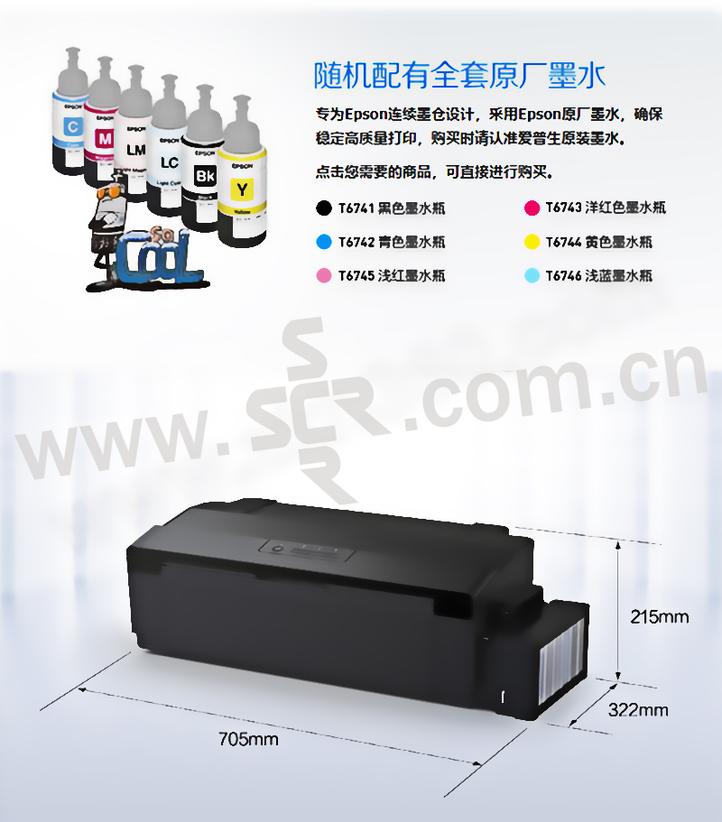 ·A3+大幅面无边距打印,表现更出色优化5760dpi,墨滴尺寸可小至1.5微微升·六色原装墨水,细腻画质,恒久靓丽更大印量(黑色约2,600页/彩色约4,700页),成本无忧·无碳粉粉尘,零臭氧排放, 原厂保修(含打印头),安心无忧