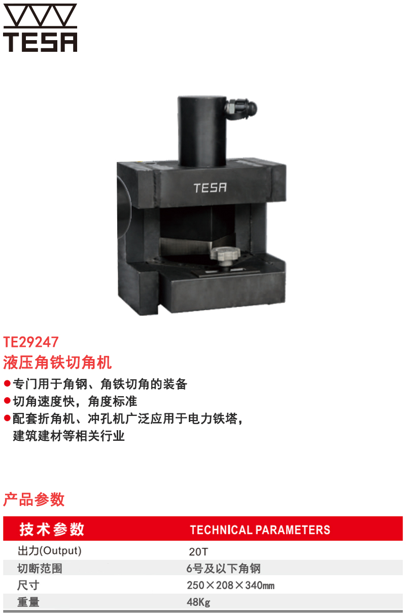 ·专用于角钢、角铁切角的装备 · 切角速度快、角度标准 ·配套折角机、冲孔机广泛应用于电力铁塔,建筑建材等相关行业