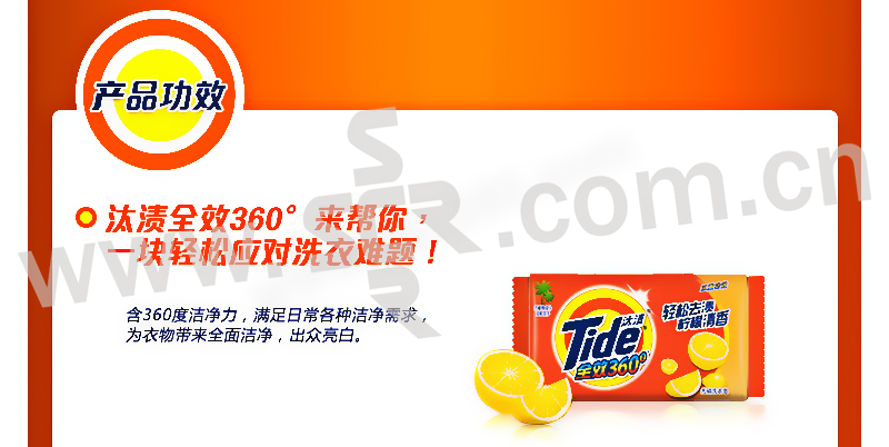 TIDE/汰渍 全效360度三重功效洗衣皂 6903148157688 202g 柠檬清新 1块