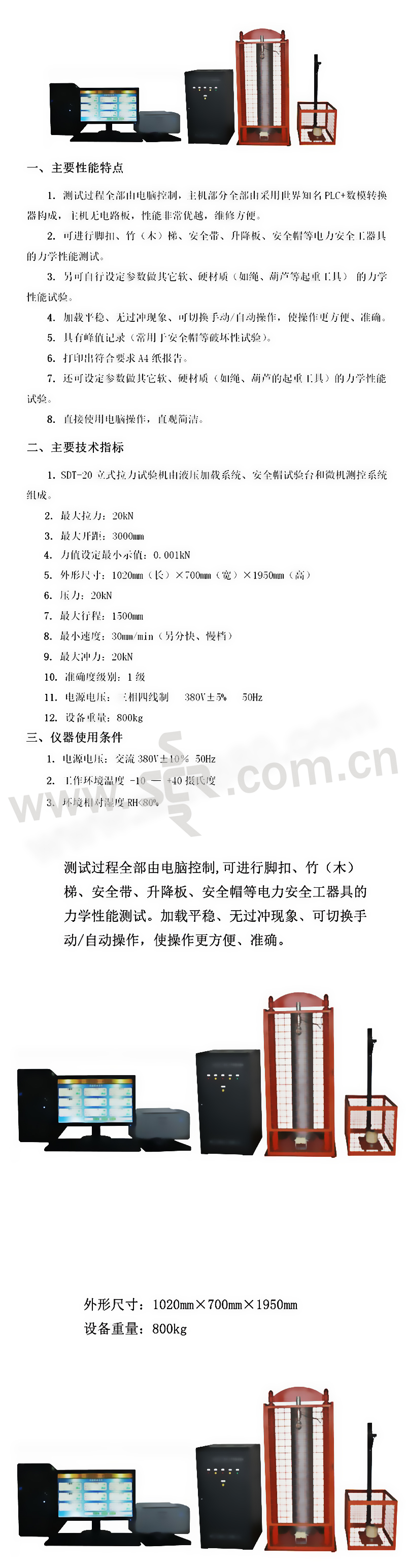 ·可进行脚扣、竹木梯、安全带、升降板、安全帽等电力安全工器具的力学性能测试